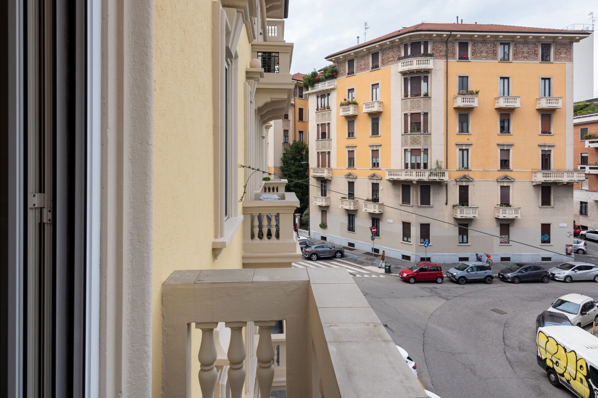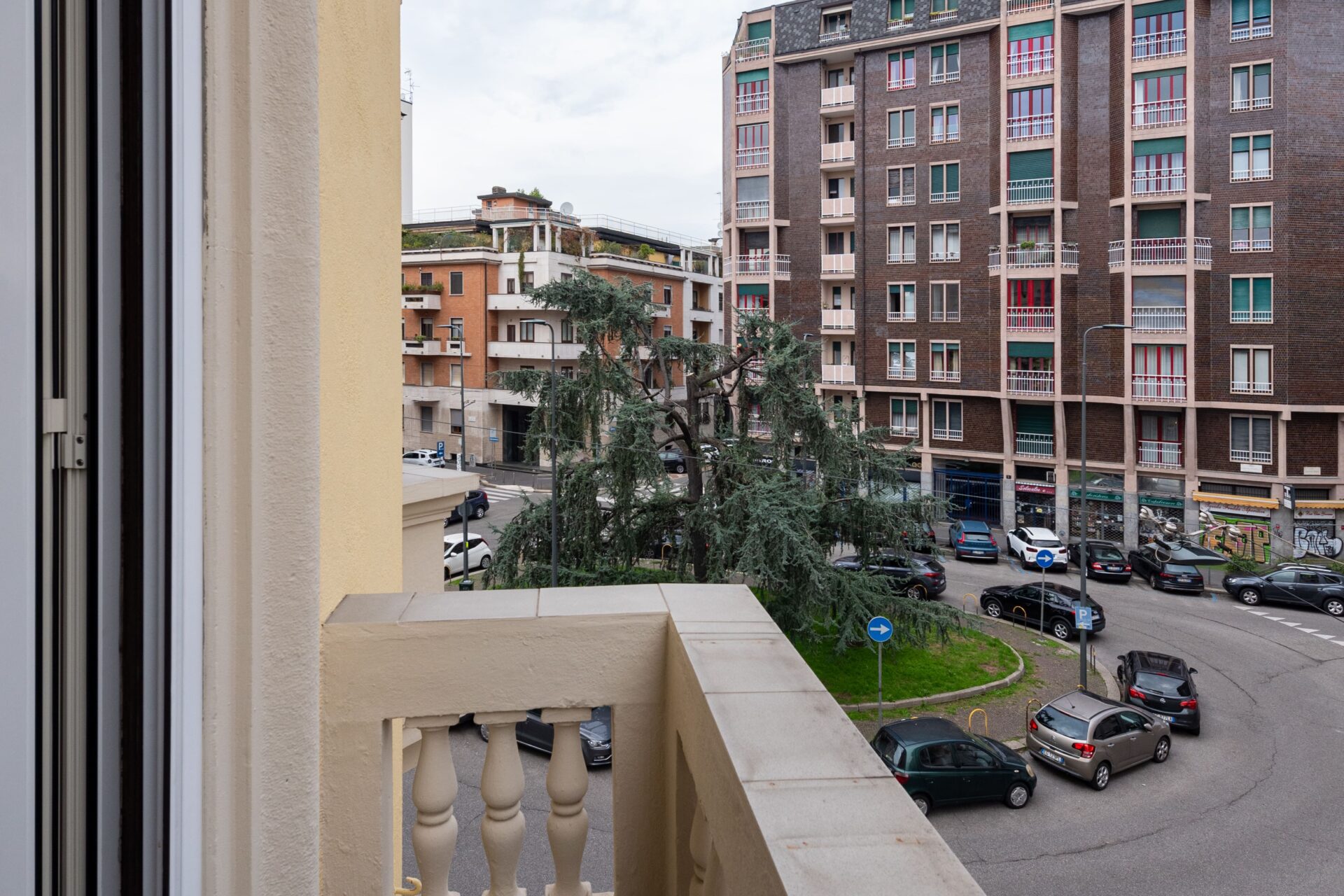 Sempre in soggiorno sono presenti due piccoli balconi che affacciano su palazzi storici dalla tipica architettura milanese.