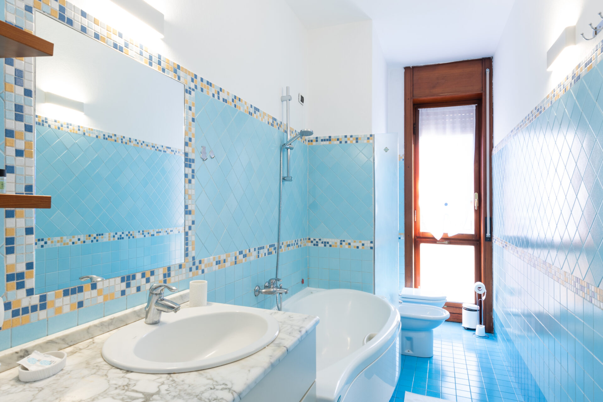 Infine è presente un elegante ed ampio bagno, dotato di una spaziosa vasca da bagno, sanitari completi ed infine i kit di cortesia con shampoo, bagno schiuma, saponette per le mani, balsamo e crema per il corpo.