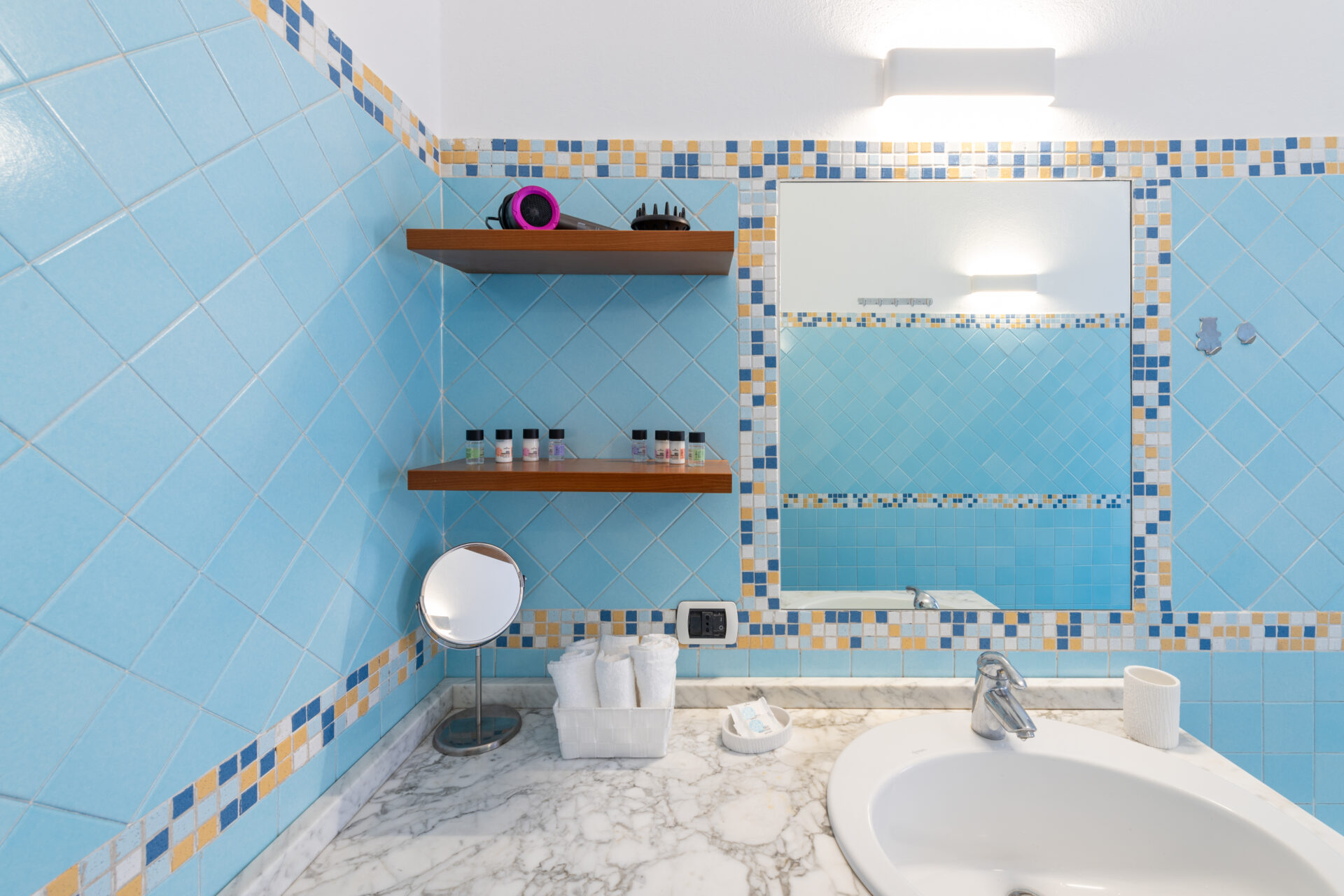 Inoltre in bagno sono presenti elettrodomestici come l’asciugacapelli e la lavatrice.