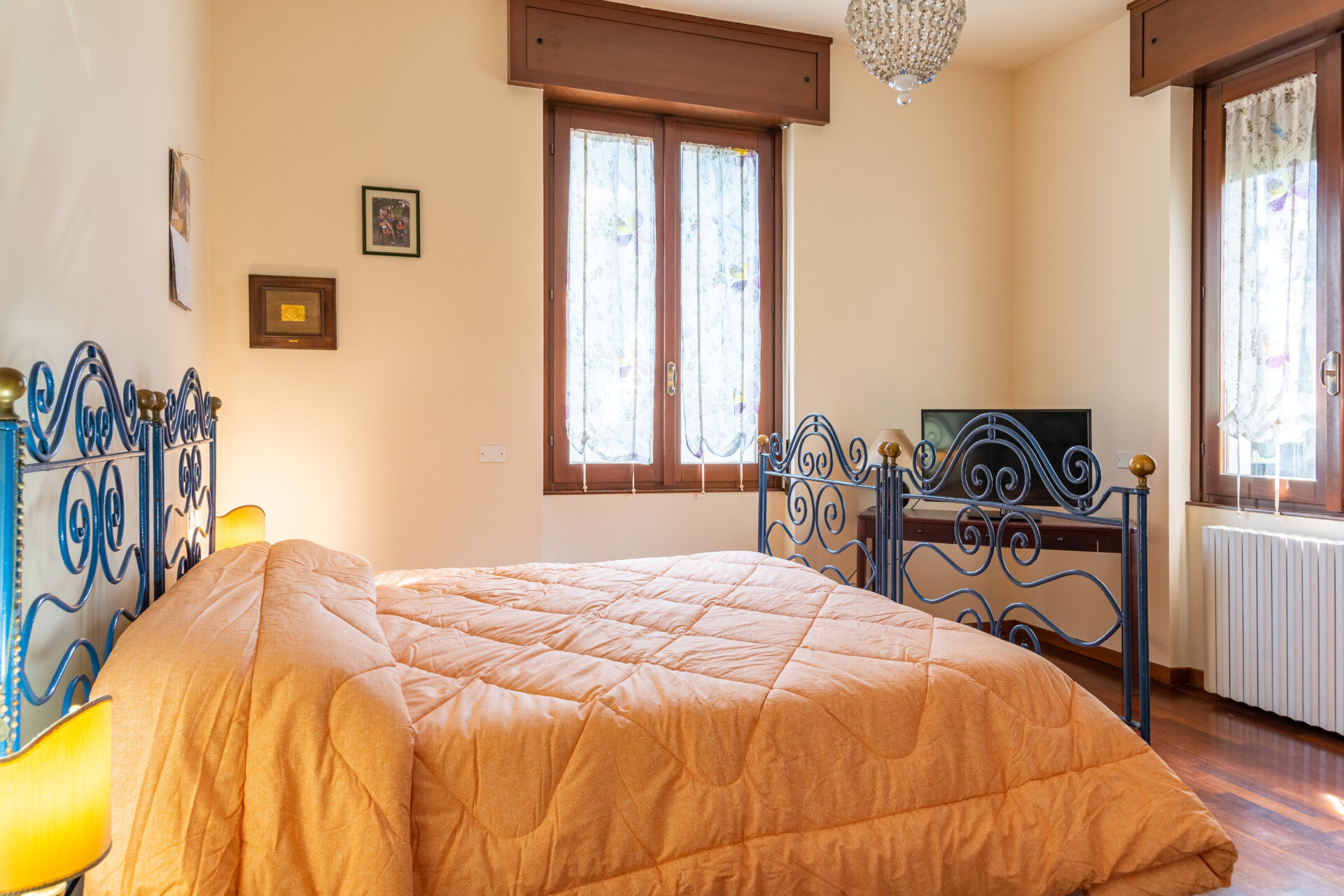 La camera matrimoniale è dotata di un ampio letto a due piazze, la seconda camera invece si presenta con un letto singolo ed un balconcino privato accessibile direttamente dalla camera in questione.
