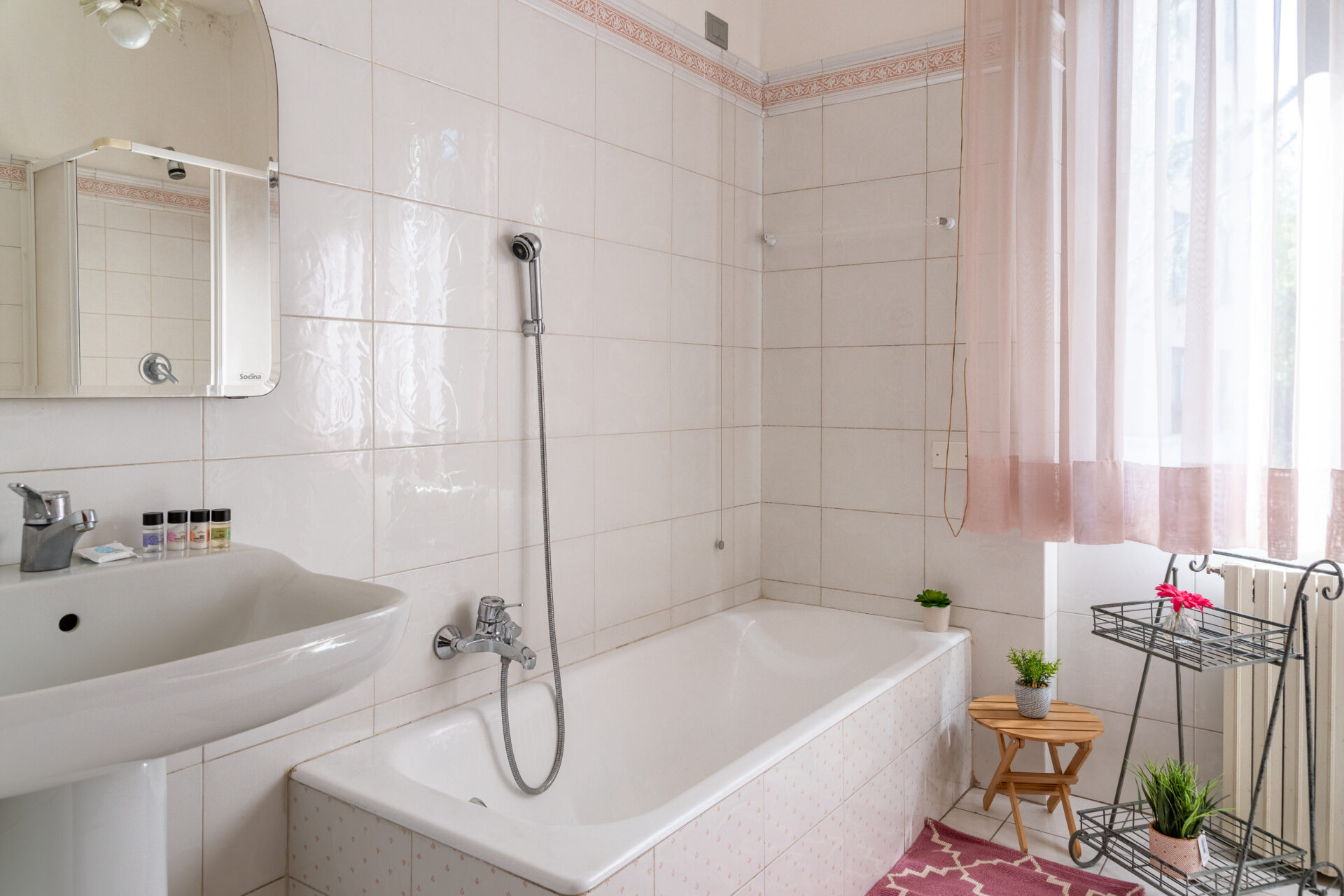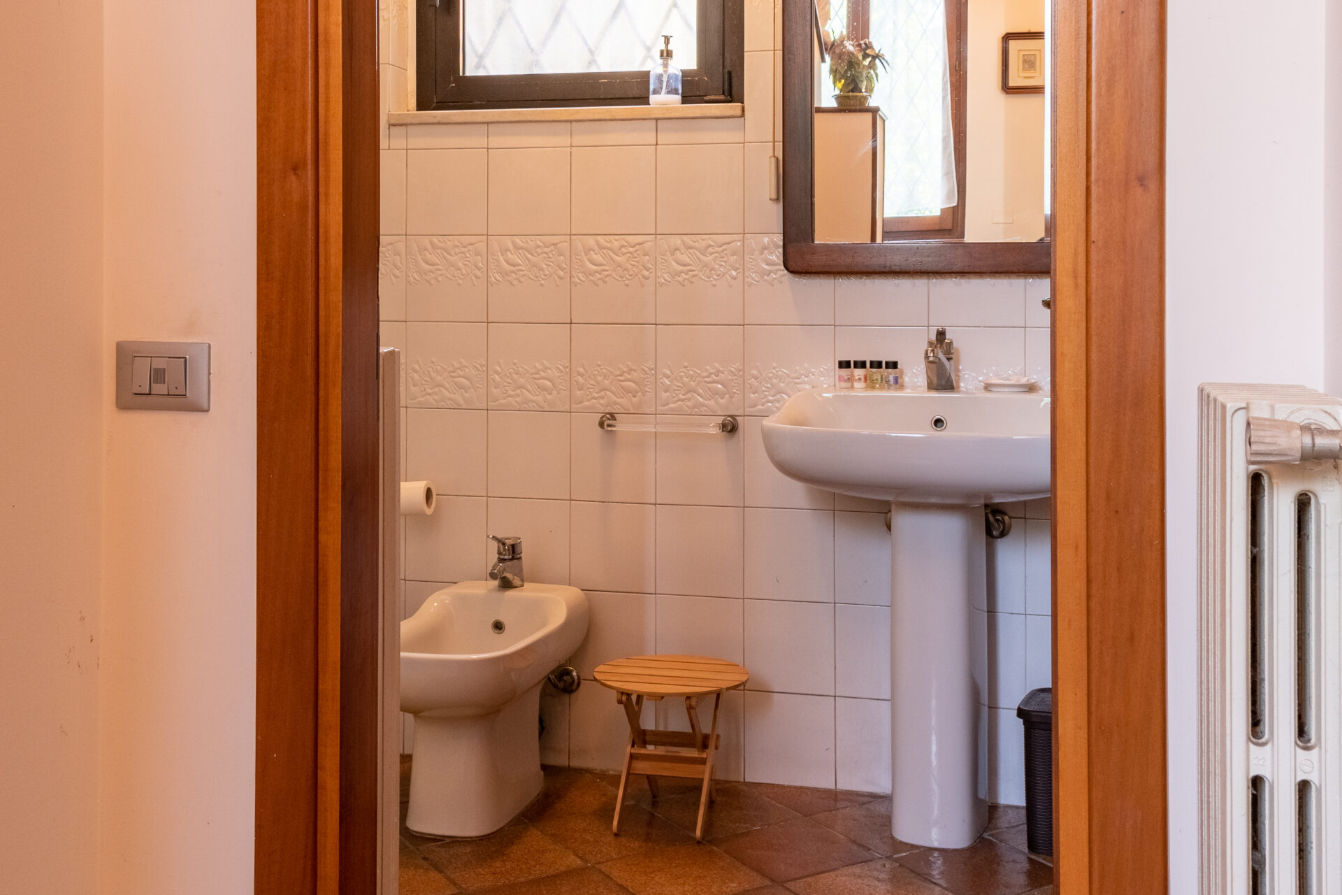 Sullo stesso piano delle camere troverete un bagno completo molto spazioso dotato di un’elegante vasca da bagno, una cabina doccia e sanitari.