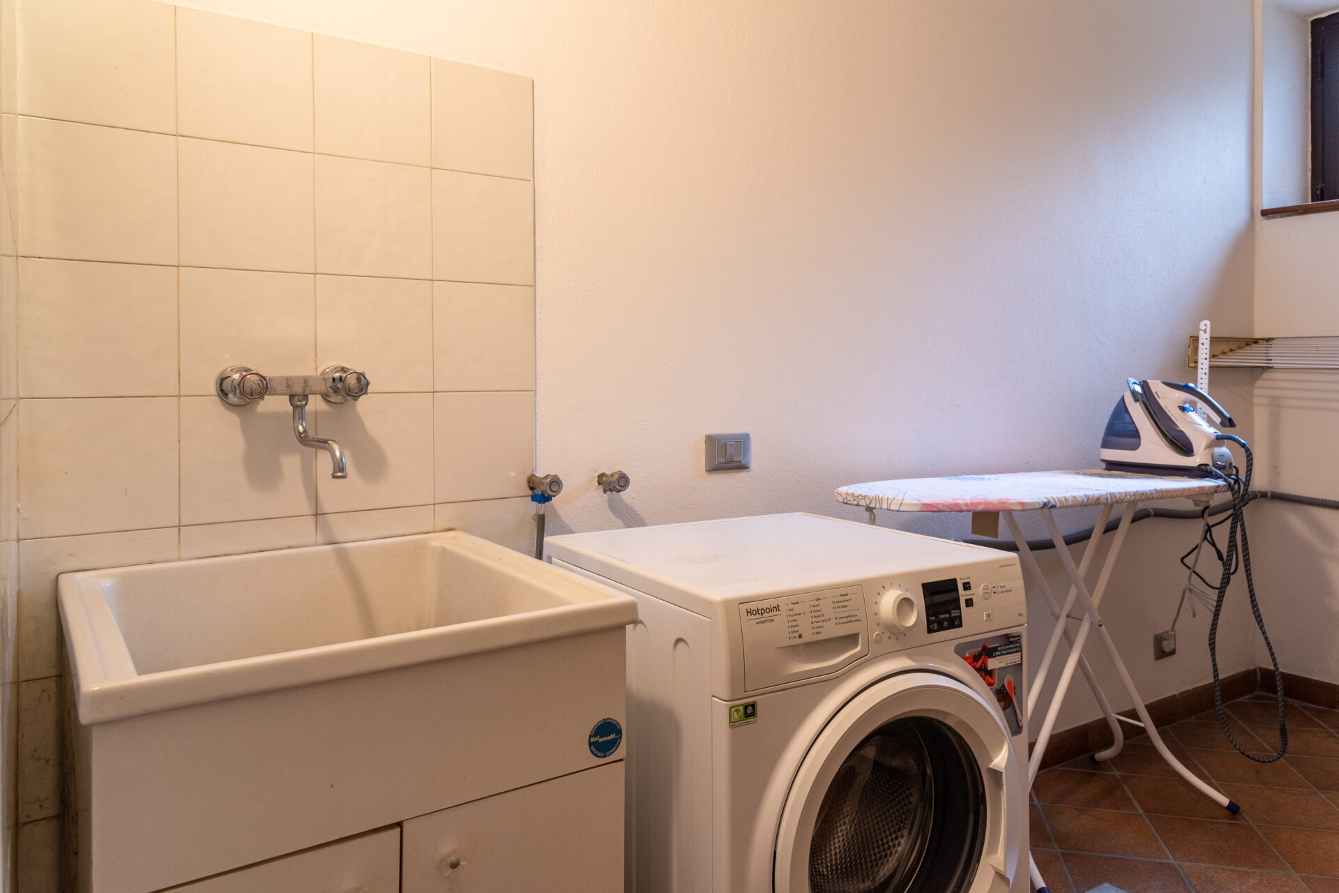 La villa dispone anche di una spaziosa taverna, perfetta per trascorrere piacevoli serate in compagnia grazie ai giochi da tavolo che saranno a vostra disposizione e di una zona lavanderia attrezzata con lavatrice e ferro da stiro con asse, in cui potrete fare il bucato con tranquillità godendo di uno spazio interamente dedicato.