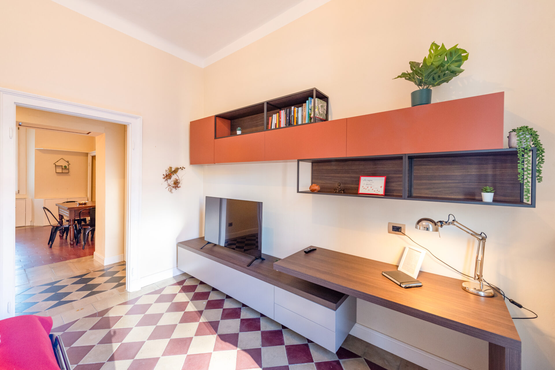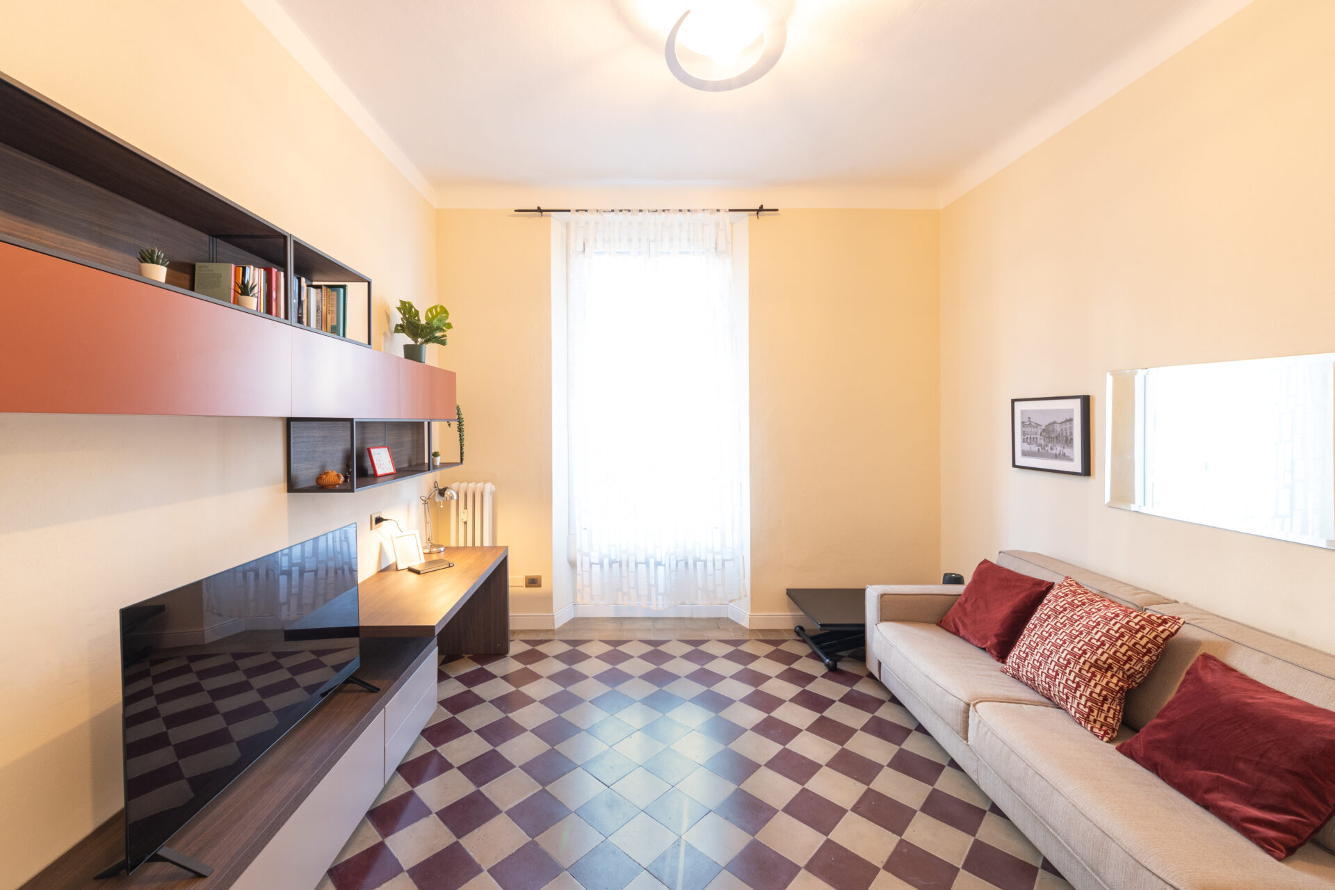 Tutto l’appartamento si contraddistingue ed è reso unico soprattutto grazie alle piastrelle originali dell’epoca, che donano alla casa un tocco vintage ed esclusivo.